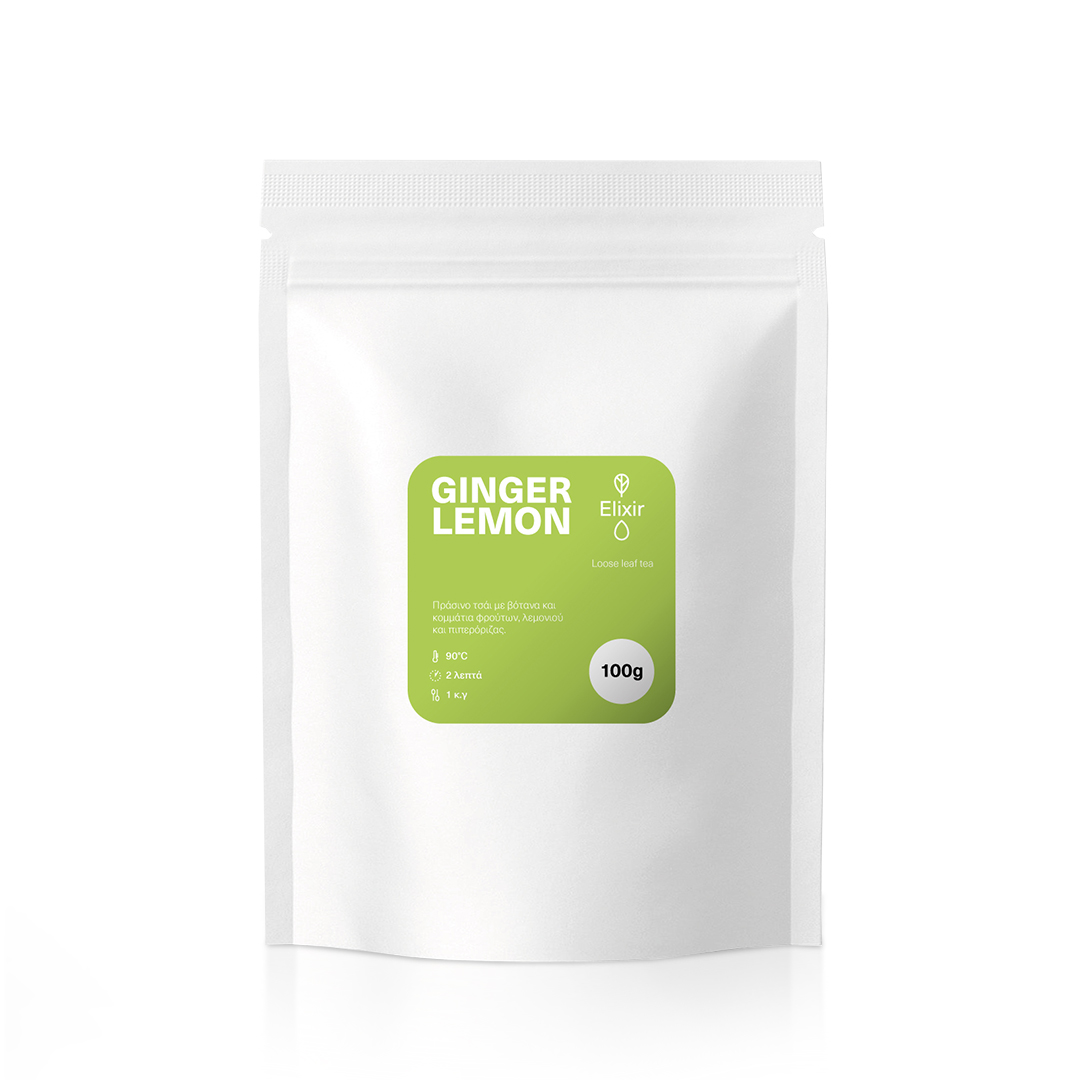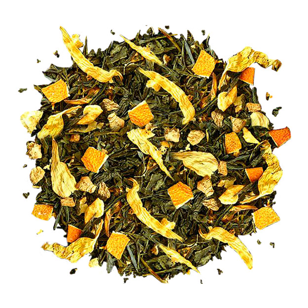 Πράσινο τσάι με βότανα και κομμάτια φρούτων, λεμονιού και πιπερόριζας